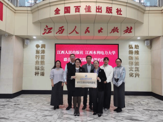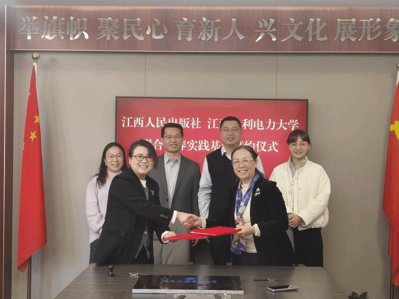 近日,我院与江西人民出版社联合培养实践基地签约仪式在江西人民出版社举行。江西水利电力大学人文与艺术学院院长万芬芬,江西人民出版社社长、总编辑梁菁,江西水利电力大学人文与艺术学院党委委员张记刚,江西人民出版社副社长、副总编辑张芝雄,江西水利电力大学人文与艺术学院学科与研究生秘书王丹等出席仪式。