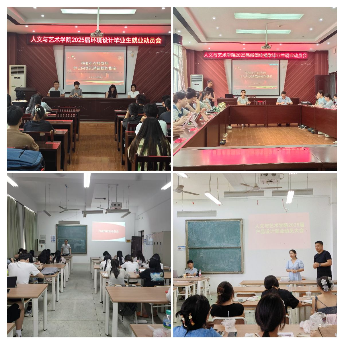 为使2025届毕业生充分认识当前的就业形势,调动毕业生的求职热情,切实促进毕业生更高质量就业,9月1日-9月4日,人文与艺术学院各专业多形式召开就业动员大会。各教研室主任、专业负责人、教学科研秘书、就业辅导员以及学院2025届毕业生参加了动员会。