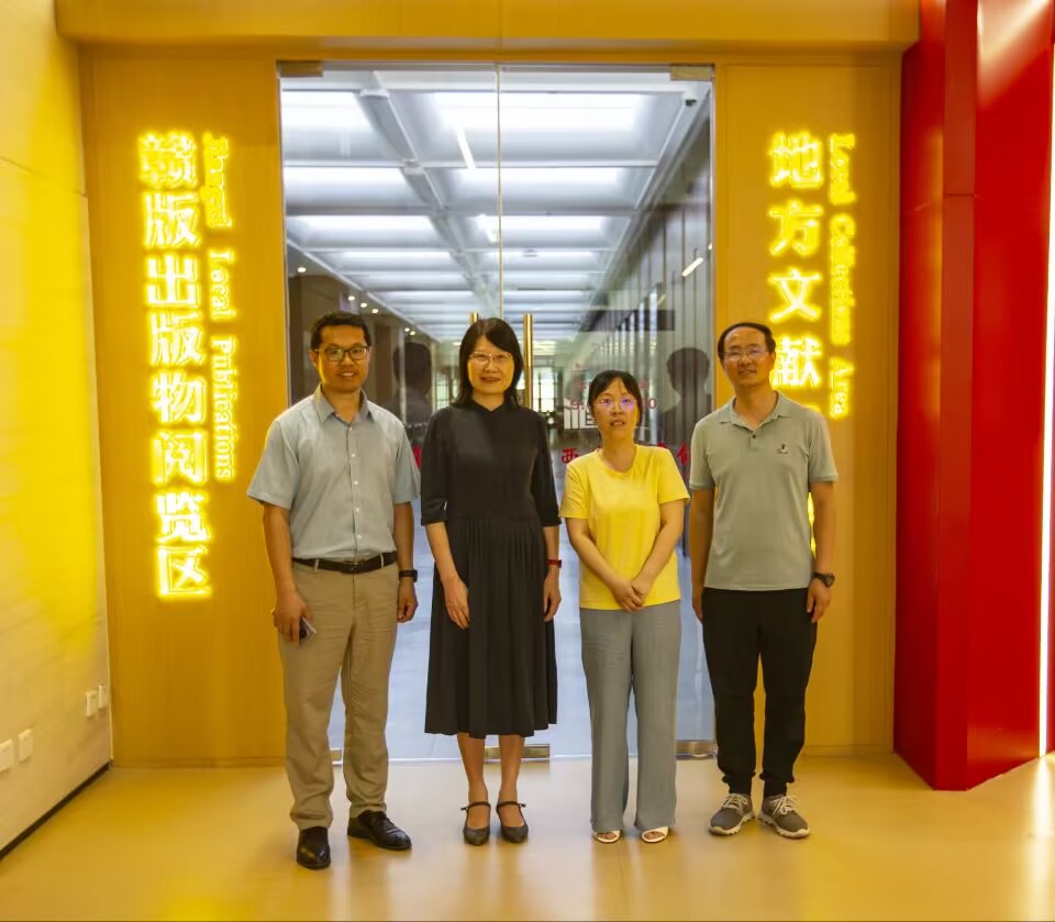 5月31日,张朝霞院长带领新闻传播学教研室相关老师赴江西省图书馆开展访企拓岗活动,参观了赣版图书展览区和红色文献阅读区,并与地方文献部主任刘景会等举行了座谈。