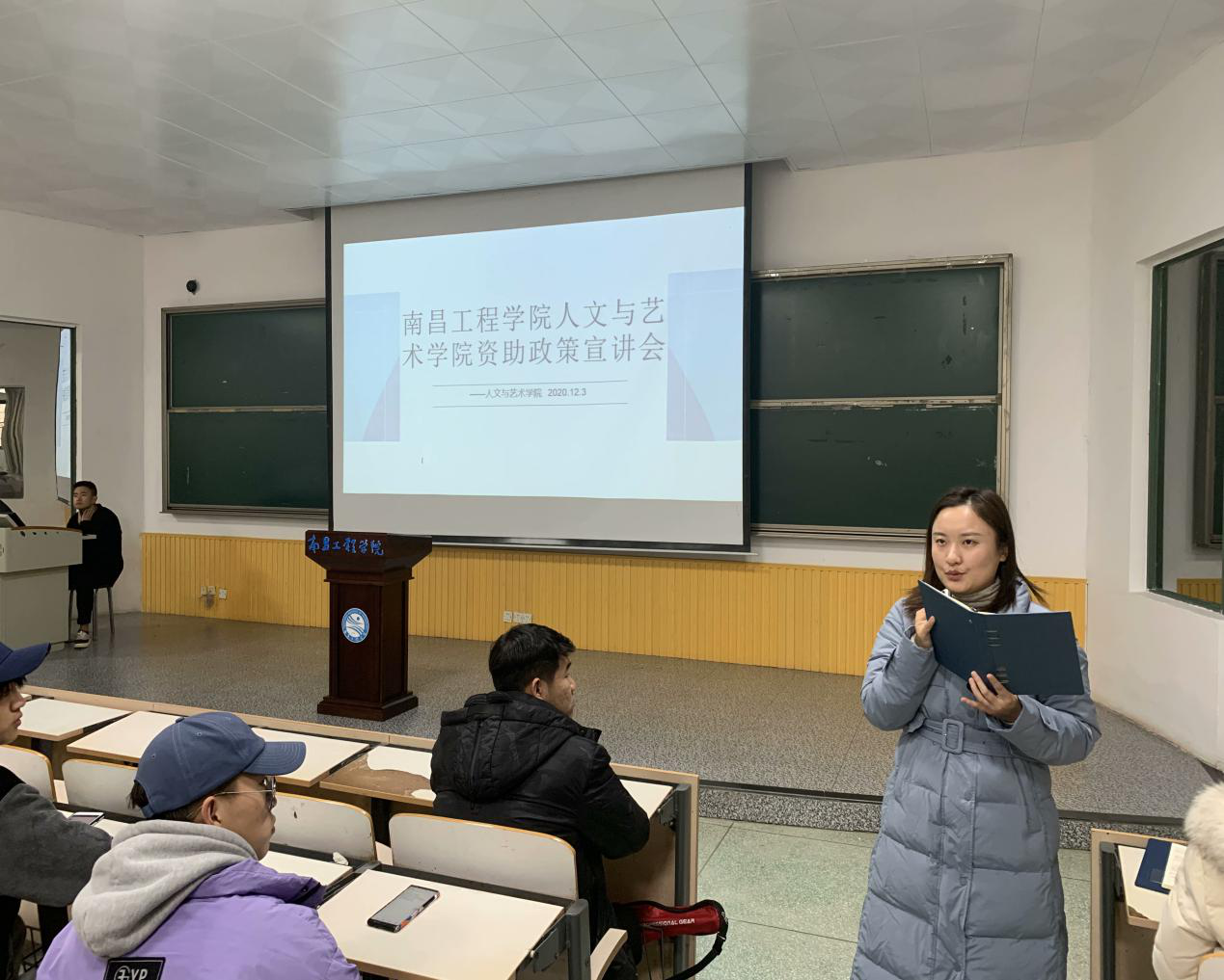 为贯彻落实高校资助政策,做好精准资助和资助育人工作,人文与艺术学院于12月3日在教学南楼C105教室召开了资助政策宣讲会。本次活动邀请我院团委副书记丁蓓蒂以及辅导员张淑华进行讲解,我院各年级班长、团支书以及学生会全体学生干部共同参加了本次宣讲活动。