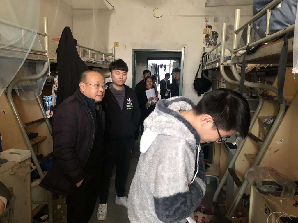人文与艺术学院党委书记熊华林,党委副书记王锐及学院部分班主任于20191227日前往学生宿舍5栋开展安全隐患排查工作。排查工作从学生寝室排查做起不留“死角”,在排查工作中发现部分寝室里存在用电不安全的情况及消防安全隐患,个别同学使用违规电器等情况,班主任及时填写安全隐患排查表,并将出现的情况记录下来,为2020的安全稳定工作计划确立方向。