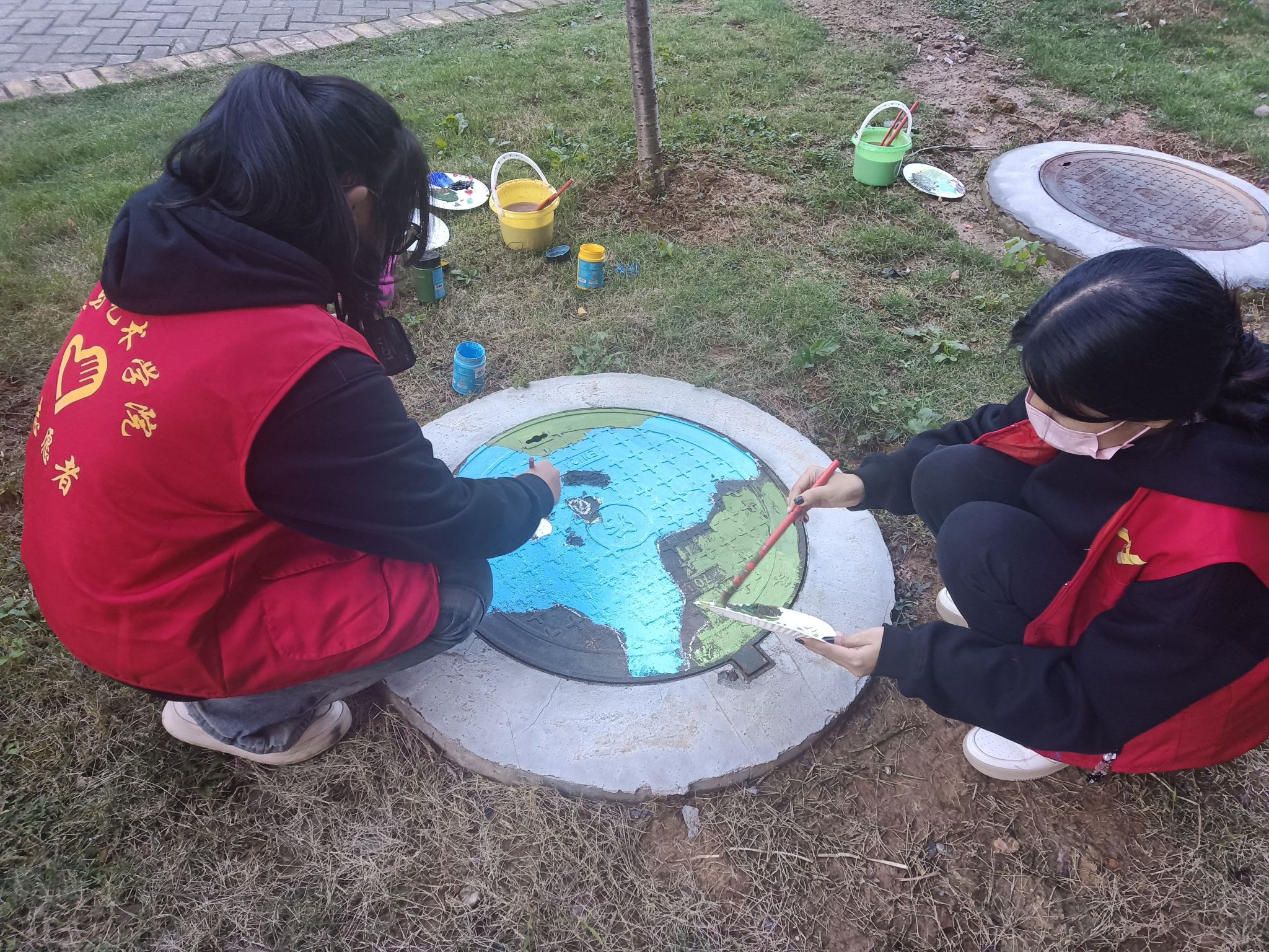 “井”上添花,绿色常伴——人文与艺术学院赴京荣社区开展井盖涂鸦志愿服务活动