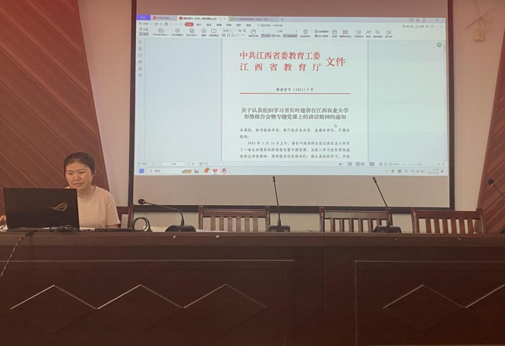 为深入学习省长叶建春同志在江西农业大学作了题为《珍惜时代际遇,不负青春韶华,在新征程上书写璀璨的青春华章》的专题形势报告,结合工作和思想实际深入研讨,切实提高学习效果,人文与艺术学院学生党支部于2023年5月30日在艺术楼A230组织全体学生党员集中学习,由学院组织员书记蒿佳杭主持学习会。