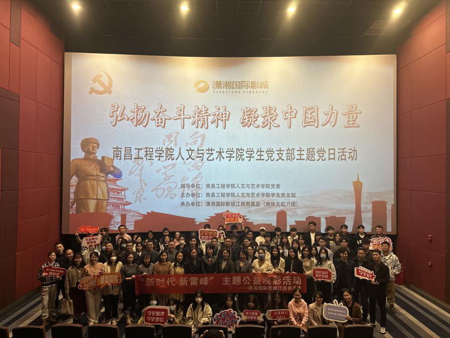 为深入学习贯彻党的二十大精神和习近平总书记关于深入开展学雷锋活动的重要指示精神,人文与艺术学院学生党支部于2023年3月14日下午14:00在奥体天虹潇湘影院组织开展“弘扬奋斗精神 凝聚中国力量”主题党日活动。